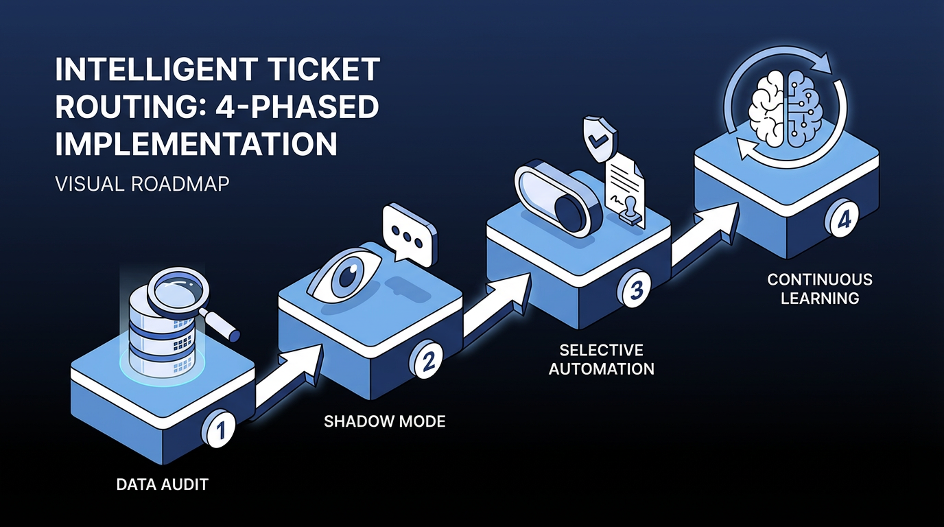 Implementation challenges in AI ticket routing projects often center on integration and change management, though technical complexity can also play a role. A phased approach helps reduce deployment risk by validating accuracy before automating decisions.